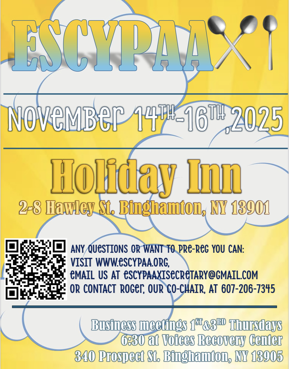 Business Meetinigs 1st and 3rd Thursdays at 6:30PM at Voices Recovery Center, 340 Prospect Street, Binghamton, NY 13905